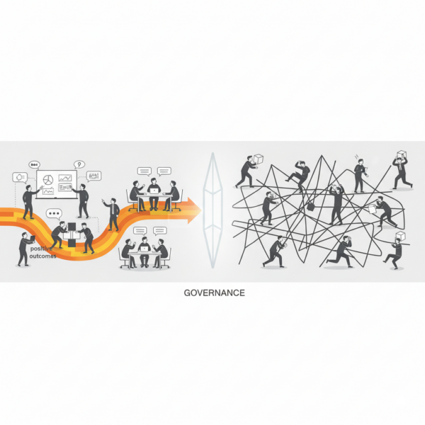 Why do leaders confuse agility with ad hoc activity? Leaders conflate agility with ad hoc activity when pace becomes the only visible metric. Teams move quickly, but without governance the work lacks a clear definition of value, agreed decision rights, or a traceable path from intent to outcome. This confusion drains trust, increases rework, and…