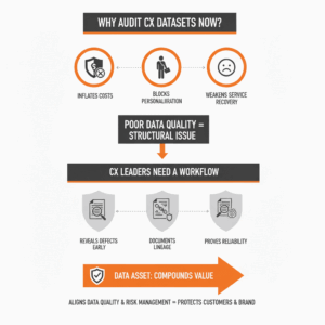Executives face mounting risk when CX decisions rely on inconsistent, stale, or opaque data. Poor data quality inflates costs, blocks personalisation, and weakens service recovery. Harvard Business Review reported IBM’s estimate that bad data costs the U.S. economy 3.1 trillion dollars annually.¹ This scale signals a structural issue, not a tactical nuisance. CX leaders need a workflow that reveals defects early, documents lineage, and proves reliability. The goal is simple. Build an audit method that any team can run, repeat, and scale across channels, journeys, and vendors without changing your core platforms. Strong audits convert data from a liability into an asset that compounds value with each interaction. Organizations that align data quality with risk management frameworks improve trust in AI and analytics outcomes, which protects both customers and the brand.² ³ (hbr.org)