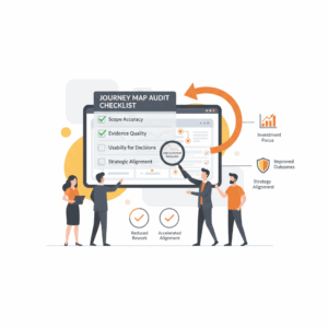 Leaders treat a journey map audit as a structured quality check that verifies whether current maps reflect real customer behavior and current operational reality. The audit tests four things: scope accuracy, evidence quality, usability for decisions, and alignment to strategy. When a map meets these standards, teams reduce rework, accelerate cross functional alignment, and focus investment on the highest value pain points. Expert sources frame journey mapping as a research grounded artifact that connects customer insights to service design and delivery, not as a poster on the wall.¹ The audit ensures your organization uses journey maps as living instruments that improve outcomes rather than static illustrations that age in place.²