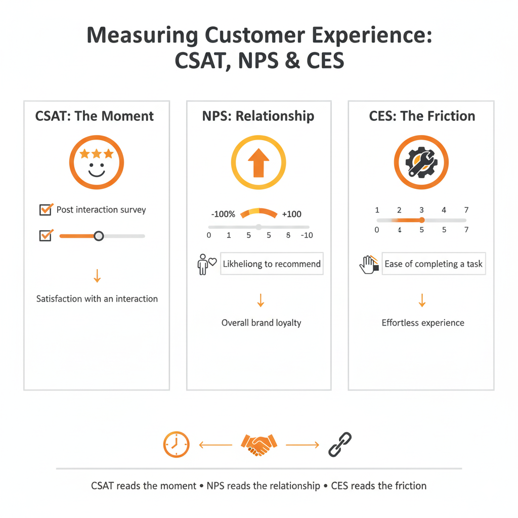 What do “leading” and “lagging” indicators actually mean? Leaders in Customer Experience and Service Transformation need crisp definitions before they choose metrics. Leading indicators are input metrics that change early and signal a likely future outcome. Lagging indicators are outcome metrics that confirm what already happened. The Balanced Scorecard popularised pairing cause metrics with result…