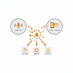 Breaking data silos means removing the structural and governance barriers that prevent voice and digital interaction data from being analysed together in a single customer journey view. In a Genesys contact centre, “voice data” typically includes call metadata (queue, agent, handle time, outcomes), recordings and transcripts, and analytics event logs.⁹˒¹⁰