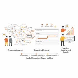 Fewer handoffs mean fewer queues, fewer errors, and faster cycle times. Evidence shows structured transitions reduce errors in safety-critical settings, and journey-level design links better experience with lower servicing cost.² ⁴ ⁷
